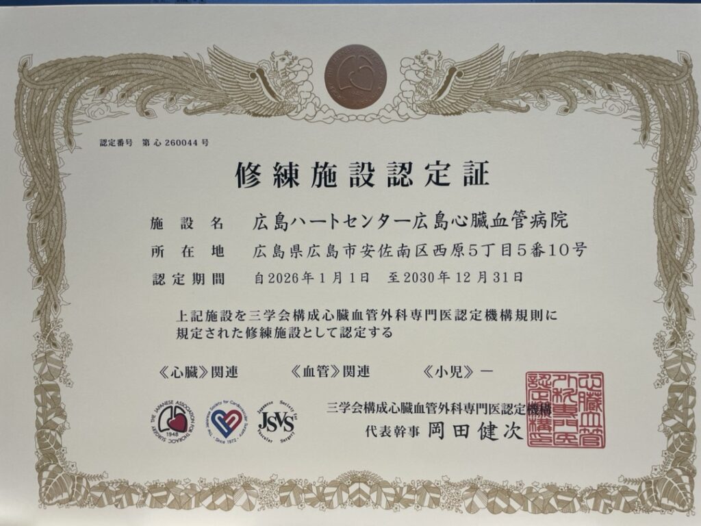 心臓血管外科専門医修練施設として認定されました。